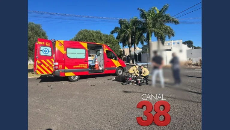 Motociclista fica ferido após colisão com caminhonete em cruzamento de Arapongas