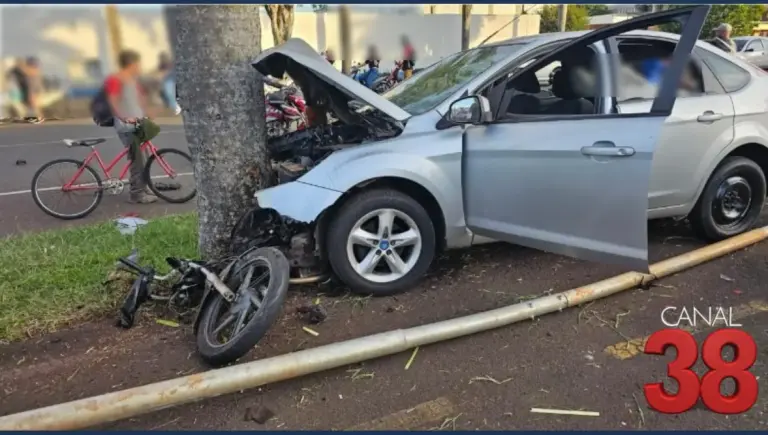 Um grave acidente foi registrado na manhã desta sexta-feira (28), na cidade de Sabáudia, envolvendo um carro, uma motocicleta e posteriormente um impacto direto contra um poste. O caso mobilizou