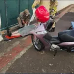 Na tarde desta segunda-feira (29), um acidente de trânsito foi registrado na Rua Iratauá, em Arapongas. Segundo informações, uma mulher de 52 anos pilotava uma motoneta Honda Biz pela Rua