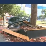 Veículo Quase Atropela Casal com Carrinho de Bebê na Praça do Redondo; Condutor Foge Após Colisão com Canteiro – Veja o Vídeo