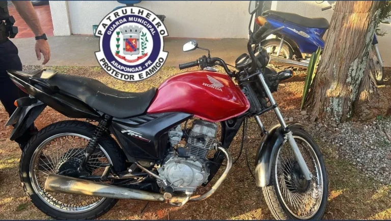 Motocicleta com chassi adulterado é apreendida pela Guarda Municipal de Arapongas durante patrulhamento no centro da cidade