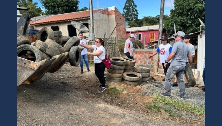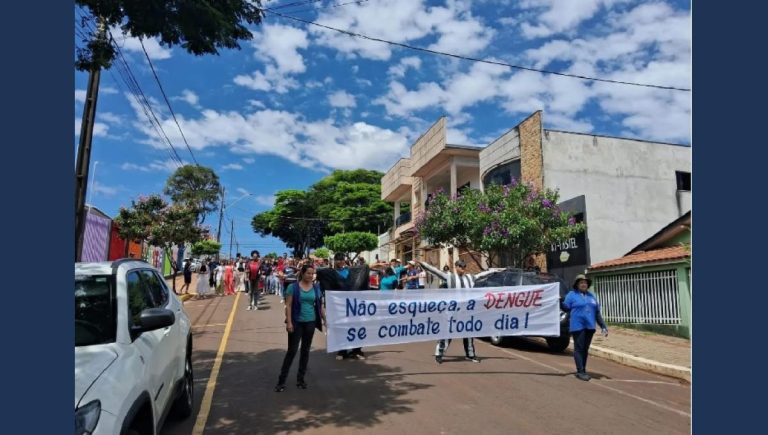 Faixas, agentes de endemias, profissionais de saúde, fanfarra municipal, um ‘mosquito da dengue gigante’ e alunos do Colégio Estadual Padre Ângelo Casagrande. Todos em passeata pelas ruas de Marilândia do