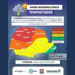 Defesa Civil emite alerta para risco de temporais nas próximas horas no Paraná