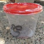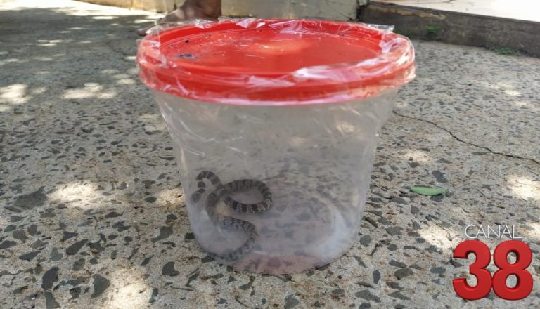 Uma moradora do Núcleo João Paulo achou nesta terça-feira (21) de manhã uma cobra possível filhote de cascavel. De acordo com informações, ao realizar a limpeza em seu terreno localizado