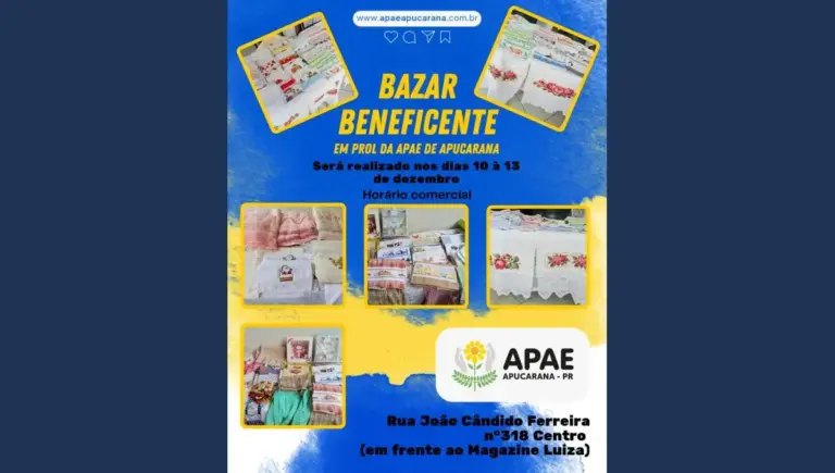 A APAE de Apucarana iniciou nesta quarta-feira (10) mais uma edição do seu tradicional bazar beneficente, que segue até o dia 13 de dezembro, em horário comercial. O evento, realizado