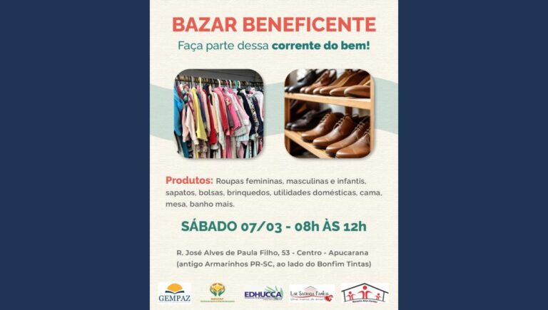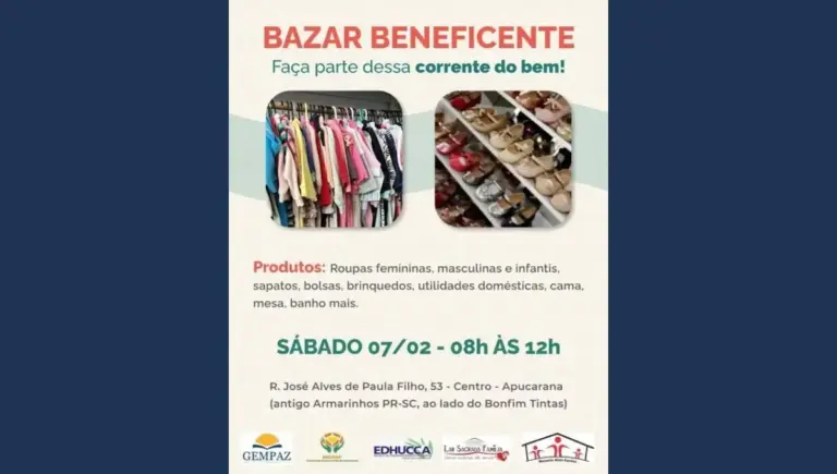 Neste sábado, dia 7 de fevereiro, a cidade de Apucarana recebe uma nova edição do Bazar Beneficente, uma iniciativa que une solidariedade e consumo consciente em prol do bem-estar de