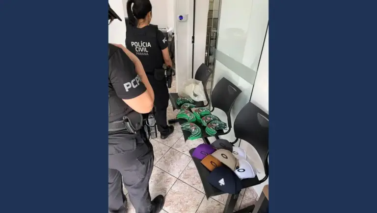 A Polícia Civil do Paraná (PCPR) apreendeu cerca de 2 mil abas e 60 metros de tecidos que seriam utilizados na confecção de bonés falsificados em Apucarana, no Norte do