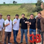 Nesta sexta-feira (20), o prefeito de Londrina, Tiago Amaral, e o superintendente da Casa Civil e ex-prefeito de Arapongas, Sérgio Onofre, e o prefeito Rafael Cita, estiveram reunidos na divisa