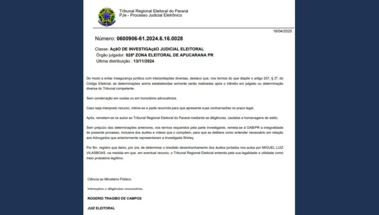 Justiça Eleitoral Reconhece Nova Fraude à Cota de Gênero e Anula Votos da Federação REDE/PSOL em Apucarana