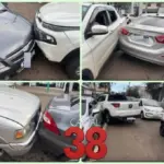 Motorista de uma Fiat Toro foi encaminhado à delegacia; apesar do impacto, ninguém ficou ferido. Um acidente de trânsito envolvendo quatro veículos foi registrado na tarde desta segunda-feira (22), no