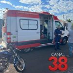 SAMU presta socorro após colisão na Rua Águias; condutor do veículo aguarda boletim de ocorrência. Na manhã desta quinta-feira (25), mais um acidente envolvendo um automóvel e uma motocicleta agitou