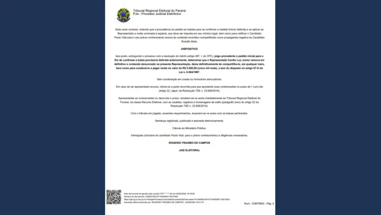 JUSTIÇA ELEITORAL CONDENA SERVIDOR PÚBLICO CECÍLIO LUZ JUNIOR A PAGAR MULTA DE R$ 5 MIL POR FAKENEWS CONTRA CANDIDATO RODOLFO MOTA