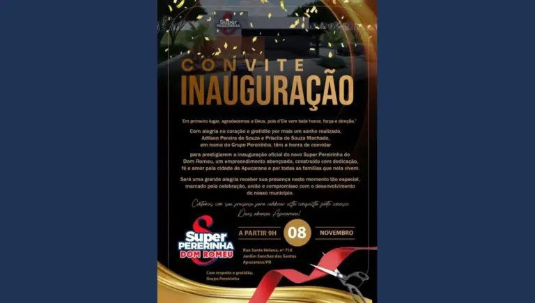 Apucarana se prepara para receber, neste sábado (08), a inauguração oficial do Super Pererinha Dom Romeu, que abre as portas às 9h, trazendo uma nova opção de compras para os
