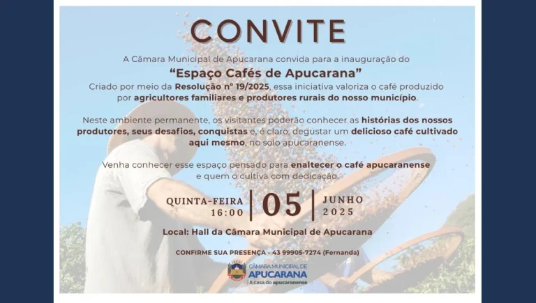 A Câmara Municipal de Apucarana está com edital aberto para o credenciamento de produtores de café interessados em fornecer o produto para o consumo interno da Casa Legislativa. A medida