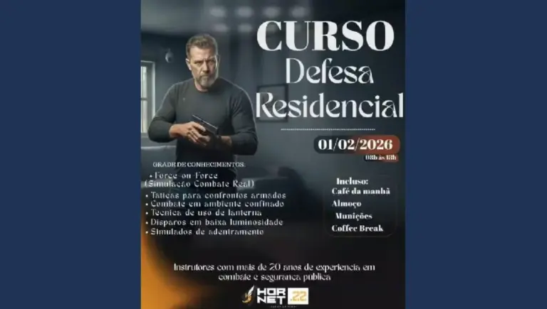 Com foco na segurança pessoal e na proteção da família, Apucarana vai sediar no dia 01 de fevereiro de 2026, das 08h às 18h, um curso intensivo de Defesa Residencial,