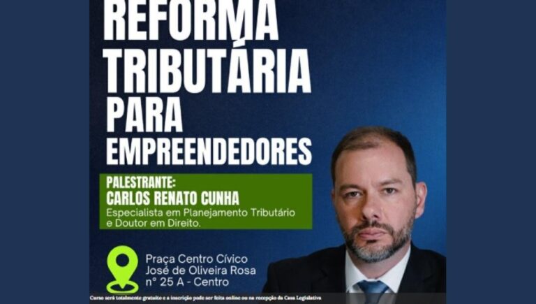 A Câmara Municipal de Apucarana, por meio da Escola do Legislativo, promove no próximo dia 13 de março, às 18 horas, o curso gratuito “Reforma Tributária para Empreendedores”. O evento
