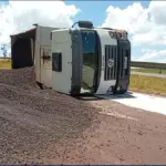 Caminhão tomba após falha nos freios na BR-376; motorista escapa ileso em Apucarana