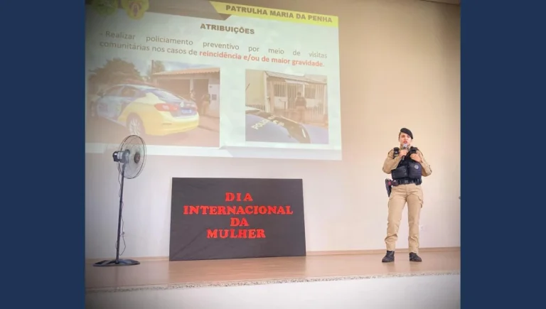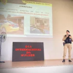 Como parte das atividades alusivas ao Dia da Mulher, a equipe da Patrulha Maria da Penha, do 10° BPM, ministrou uma palestra no sábado (08), sobre violência doméstica e seus