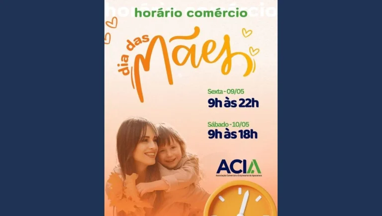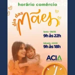Nesta semana, o comércio de Apucarana estará com horário especial de atendimento para facilitar as compras de Dia das Mães. A Associação Comercial e Empresarial de Apucarana (ACIA) informa que,