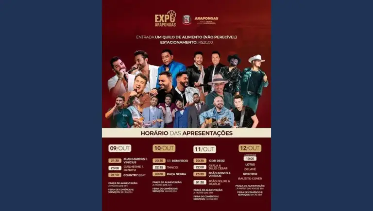 Já estão a todo vapor os preparativos para a ExpoArapongas 2025, que acontece de 09 a 12 de outubro no Expoara – Centro de Eventos. O evento promete reunir grandes