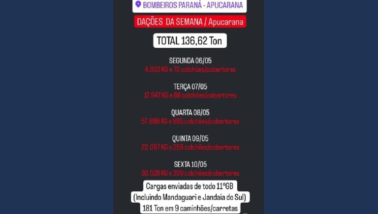 Desde o início da campanha solidária, a comunidade de Apucarana tem se mobilizado em uma demonstração de solidariedade e apoio às vítimas das recentes adversidades do Rio Grande do Sul.