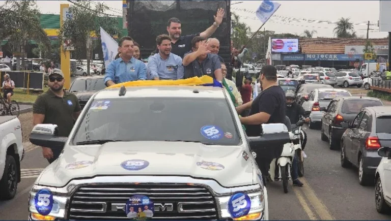 Milhares de pessoas saíram em carreata nesta sexta-feira, pela Avenida Arapongas, para receber o apresentador Ratinho, que veio declarar o apoio à candidatura de Rafael Cita (PSD). Durante a passagem