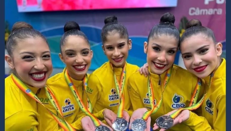 País pode ampliar medalhas neste domingo (12), nas finais individuais O sábado (11) foi prateado para o conjunto brasileiro de ginástica rítmica, já com vaga olímpica assegurada em Paris. Na