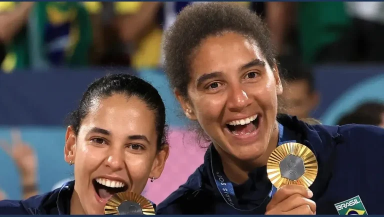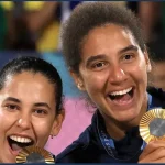 Brasil volta a ter dupla de mulheres campeãs olímpicas após 28 anos ouvir: No fim da noite parisiense, iluminada pela Torre Eiffel, ninguém brilhou mais na quadra de vôlei de