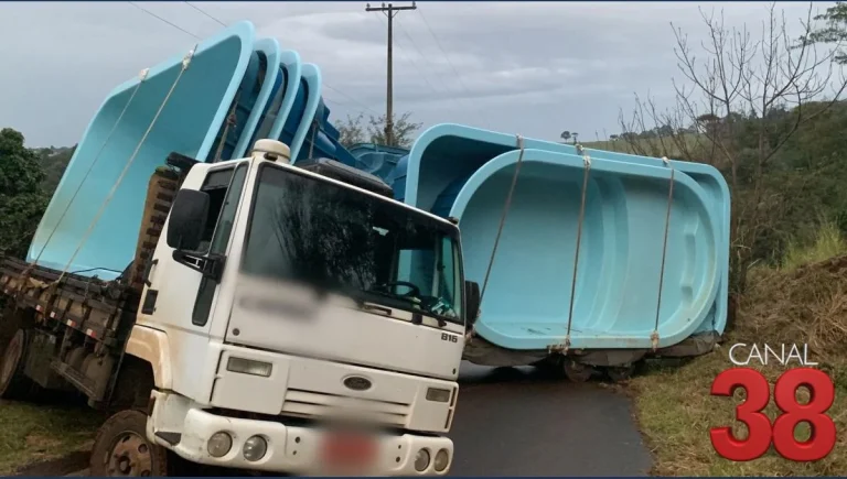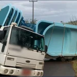 Caminhão Carregado com Piscinas Perde o Controle e Bloqueia Estrada em Apucarana na Tarde Desta Quinta-feira (26)