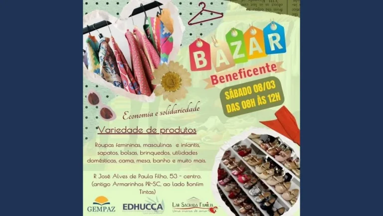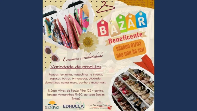 A segunda edição de março do Bazar Beneficente, neste sábado, dia 8, oferecerá nova oportunidade de economia e solidariedade, com grande variedade de roupas, calçados e utilidades. O tradicional evento
