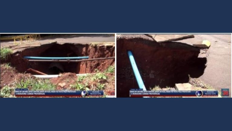 Moradores de Apucarana cobram ação da Prefeitura após um mês abertura de cratera em rua Humberto Contato