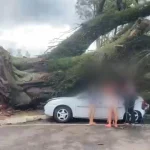 Queda de Árvore de Grande Porte Atinge Sete Veículos em Frente ao Cemitério Cristo Rei em Apucarana