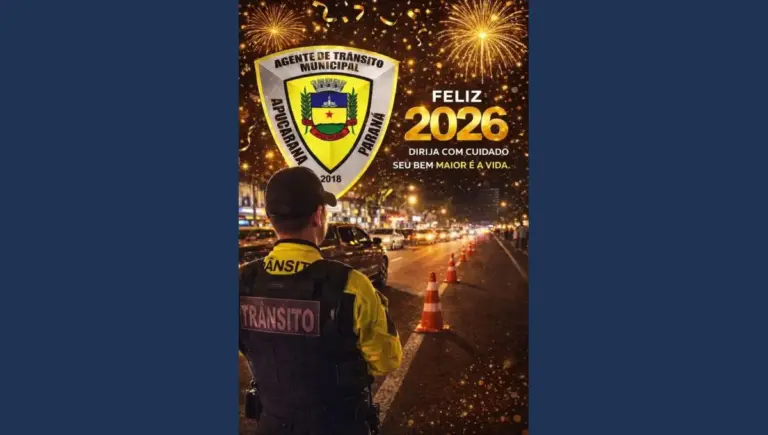 Os Agentes de Trânsito de Apucarana desejam a toda a população um Feliz 2026, com saúde, paz e segurança para todos. Com o início de um novo ano, reafirmamos nosso