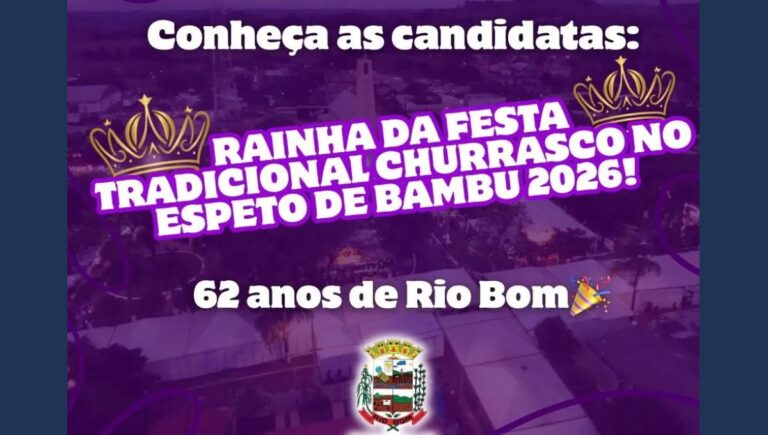Rainha da Festa do Churrasco no Espeto de Bambu 2026 Rio Bom já respira o clima de celebração e tradição com a apresentação oficial das candidatas ao título de Rainha