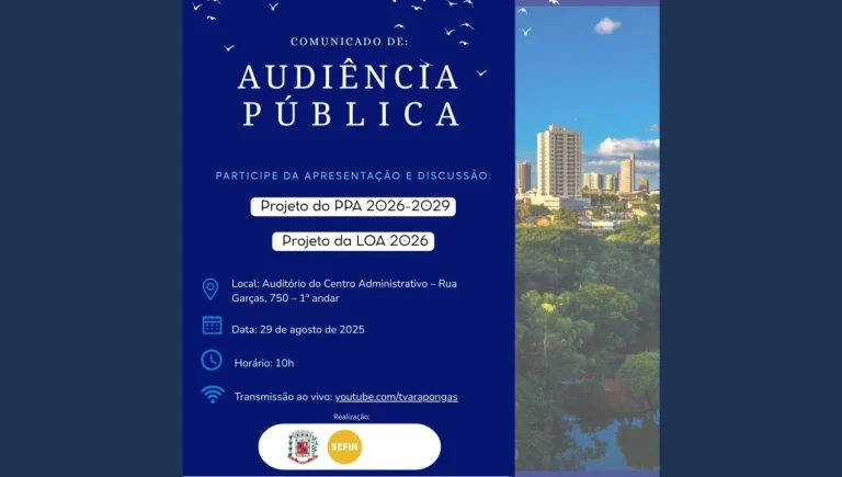 Prefeitura de Arapongas promove audiência pública sobre Plano Plurianual e orçamento de 2026