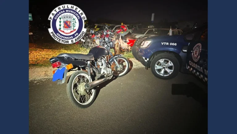 Adulteração de Sinal Identificador de Veículo Automotor. Durante patrulhamento preventivo realizado na manhã deste sábado (4), por volta das 9h25, a Guarda Municipal de Arapongas apreendeu uma motocicleta com placa