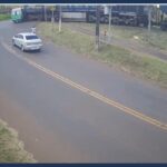 Câmeras registram flagrante de acidente entre ambulância e trem em Jandaia do Sul