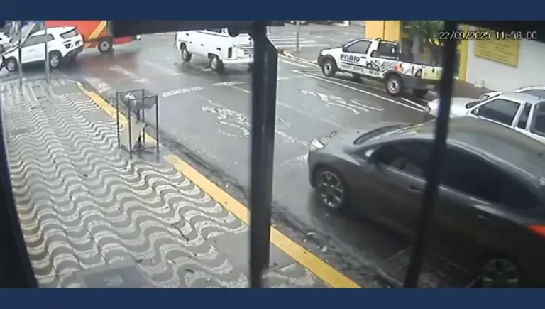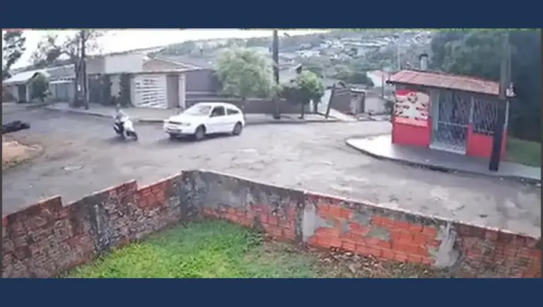 Câmeras de segurança registraram o momento do acidente ocorrido na manhã desta quinta-feira (9) no Núcleo João Paulo, em Apucarana. A colisão envolveu um VW Gol e uma motocicleta Honda