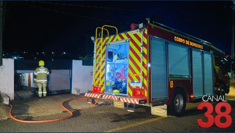 Na tarde desta quarta-feira (4), equipes do Corpo de Bombeiros foram acionadas para conter um incêndio que atingia a parte externa de uma residência na Rua dos Produtores, na Colônia