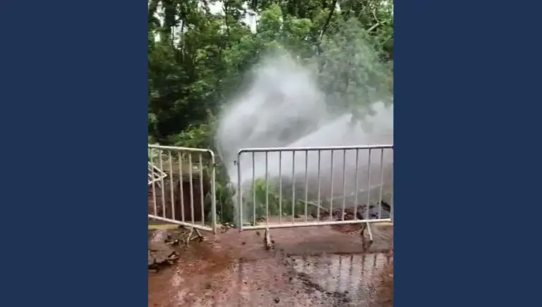Sanepar trabalha para restabelecer o fornecimento de água após rompimento de adutora, enquanto a Copel atua na rede de alta tensão para que a Prefeitura faça o manejo de árvore
