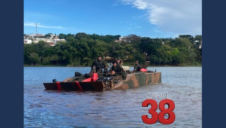 30º BIMEC de Apucarana apresenta novo lote de viaturas blindadas de transporte pessoal Guarani no Lago Jaboti Nesta manhã de sexta-feira (22), as águas do Lago Jaboti, em Apucarana, foram
