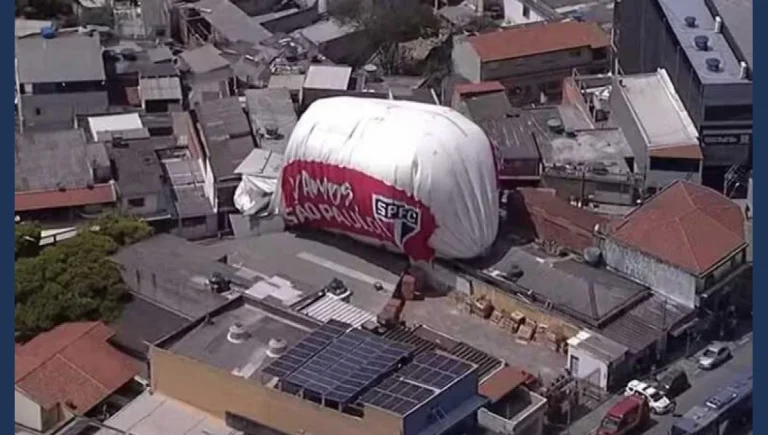 Um dirigível, contratado pelo São Paulo Futebol Clube para uma ação promocional, caiu na quarta-feira, 25 de setembro, em meio a casas na rua Farias Brito, no bairro Veloso, em