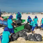 Operação de limpeza das areias começou no sábado (20) e mobiliza 181 trabalhadores em Pontal do Paraná, Matinhos e Guaratuba. Em média, foram recolhidas 5,3 toneladas de resíduos por dia.