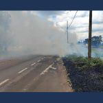 Fogo em vegetação às margens de rodovia em Apucarana atrapalha motoristas