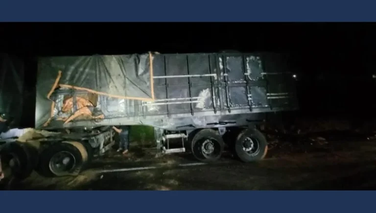 Na noite desta segunda-feira (11), um caminhão Volvo/FH 540, acoplado a dois semirreboques, pegou fogo na PR-862, próximo ao Km 04, no município de Ibiporã. A ocorrência foi atendida pelo