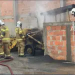 Trator pega fogo em depósito de material de construção no Jardim Itália em Apucarana