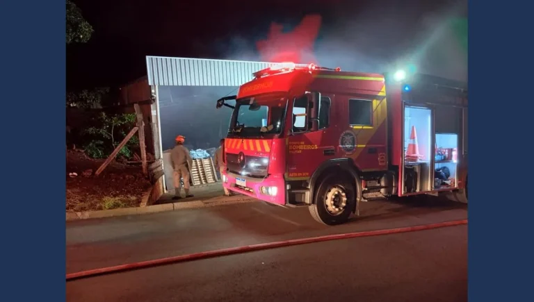 Na madrugada desta sexta-feira (13), por volta das 2h05, equipes do Corpo de Bombeiros de Apucarana foram acionadas para combater um incêndio em um barracão localizado na Rua Aço. Segundo