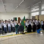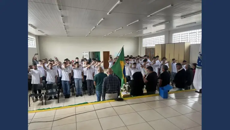 A Junta de Serviço Militar de Marilândia do Sul realizou a cerimônia cívica de Juramento à Bandeira. A solenidade aconteceu na Casa de Cultura, com a presença de 68 jovens