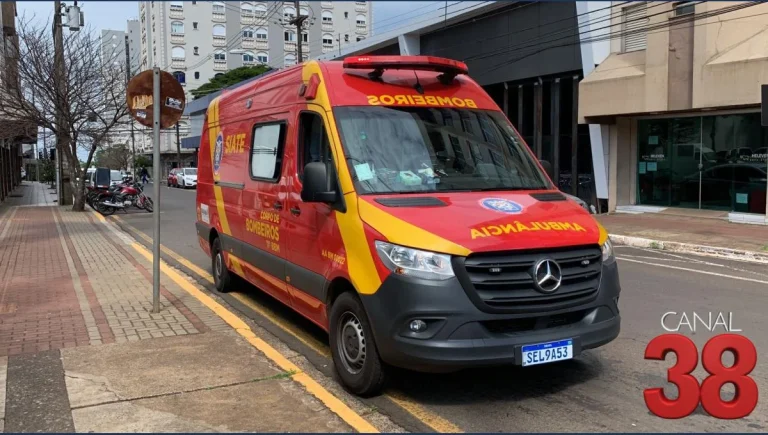 Criança prende o braço em porta de edifício no centro de Apucarana e é levada à UPA após atendimento dos bombeiros