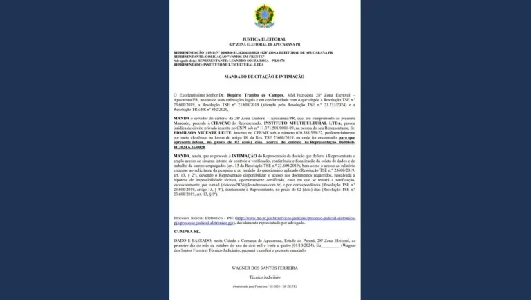 Justiça Eleitoral de Apucarana Nega Pedido da Coligação “Vamos em Frente” do Candidato Paulo Vital para Impedir a Divulgação da Pesquisa do Instituto Multicultural Contratada pelo Canal 38